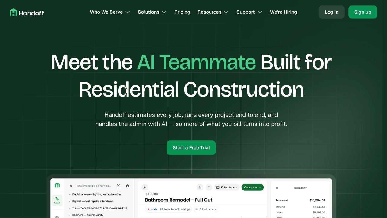 You know the drill—voice notes from site walks, supplier prices that change mid-bid, proposals in one system and invoicing in another. Errors creep in, margins erode, and slow estimates cost you wins. Handoff.AI is a vertical AI platform that compresses the entire contractor workflow—from lead to estimate to payment—into one system. It matters because speed, accuracy, and cash conversion now differentiate winners. Bottom line: it replaces scattered tools with a measurable path to higher close rates and steadier margins.